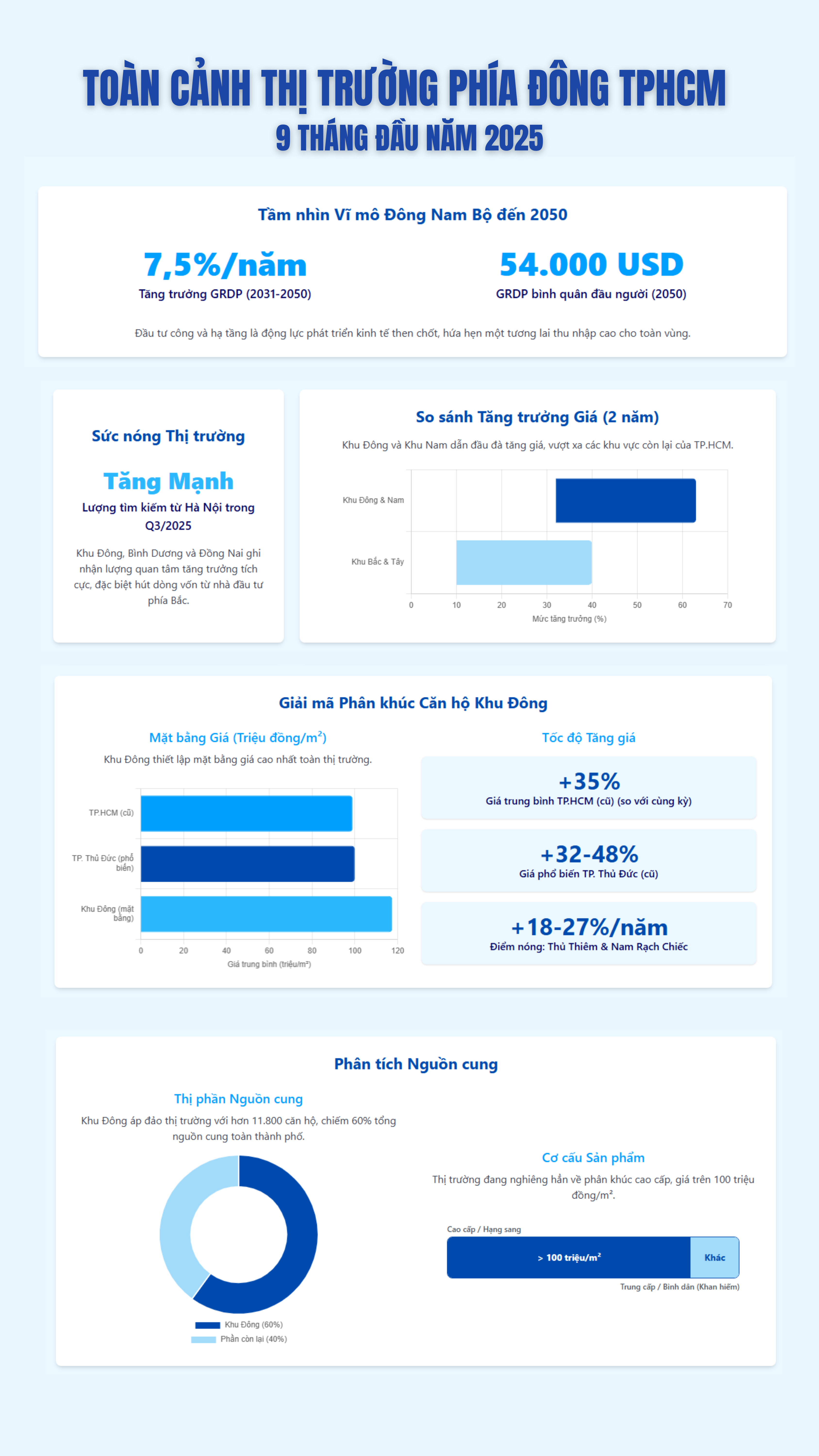 TOÀN CẢNH THỊ TRƯỜNG PHÍA ĐÔNG TPHCM 9 THÁNG ĐẦU NĂM 2025